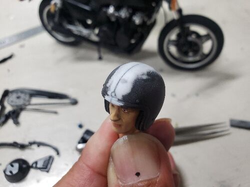 こんにちは! ジョージは前回、ヘルメットの接着からパテ埋めまでをお伝えいたしました。 今回で第一弾完成となりますのでご覧ください! 合わせ目を消すため400~1200番までのスポンジヤスリを使用して研磨します。 ヘルメットをセミグロスブラックで塗装し…