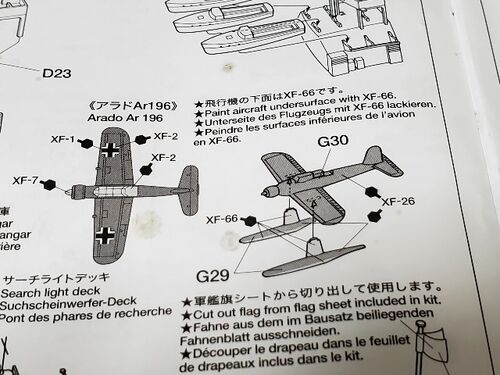 2023年2月28日 こんにちは! 二月も終わりましたねぇ。 職場は月末作業が多すぎてバタバタしてます。 昨夜のビスマルクの作業です。 艦載機アライドAr196を組み立てます。 下地塗装を施した状態です。 1/350スケールなんでプロペラは欲しかったが。。 古いキ…