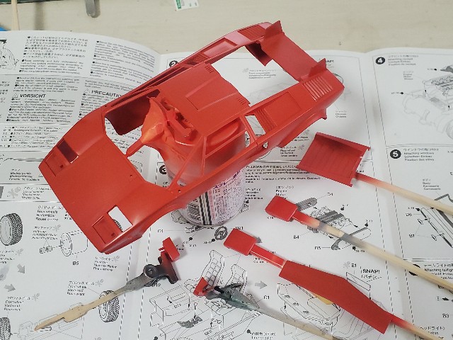 いよいよ本塗装のタミヤスプレー イタリアンレッドを吹き付けます。