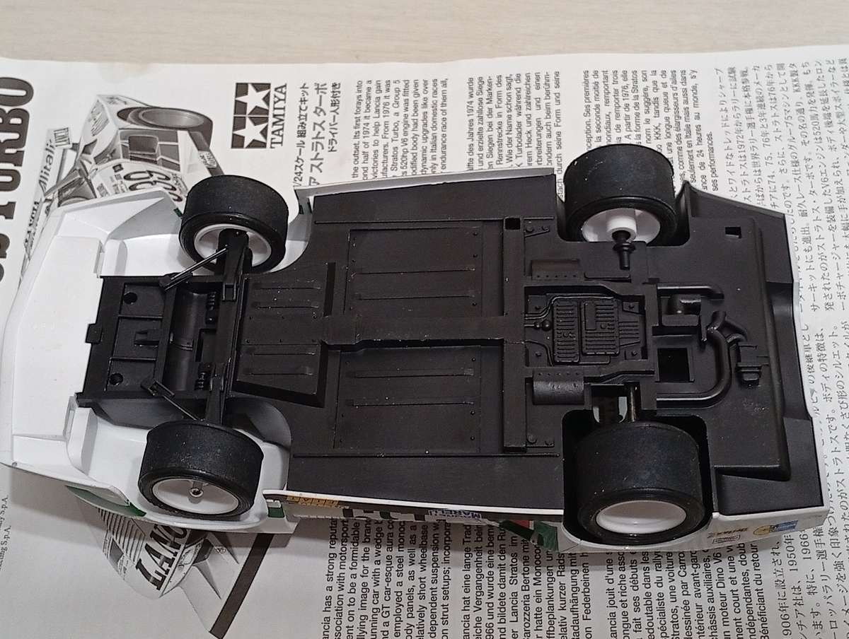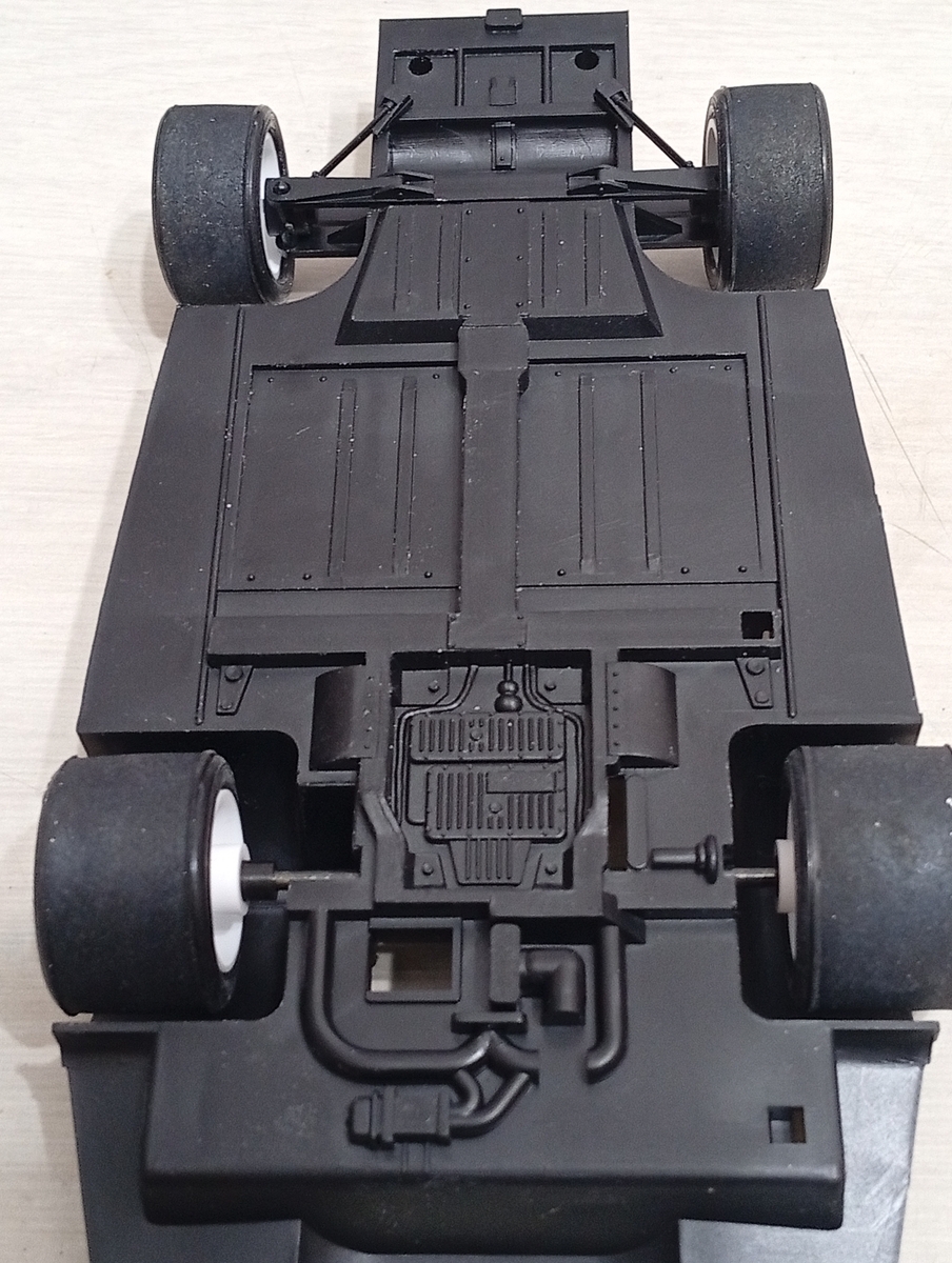 リアに足回りの部品はなく、シャフトをぶっ刺してホイールを組み付けるスタイルです。(元がモーターライズですからね。)